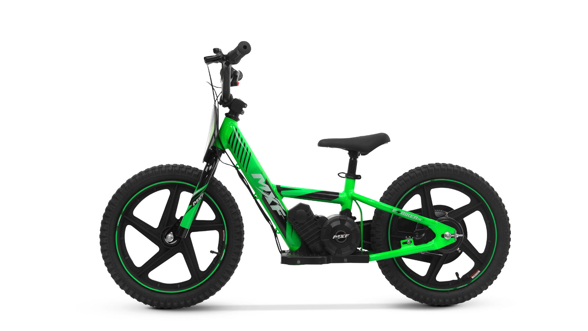 A MXF E-Biker 16 é a bicicleta elétrica infantil perfeita para introduzir as crianças ao mundo da mobilidade sustentável. Leve, segura e divertida, ela combina a liberdade de pedalar com a assistência de um motor elétrico de 170W, proporcionando autonomia e independência aos pequenos ciclistas.